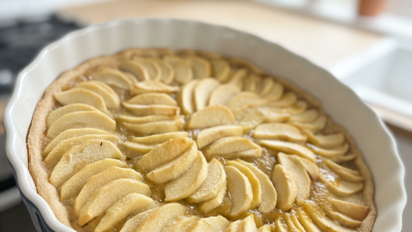 Pečení: Pečte v předehřáté troubě 30–40 minut, dokud okraje těsta nezezlátnou a jablka nezměknou.